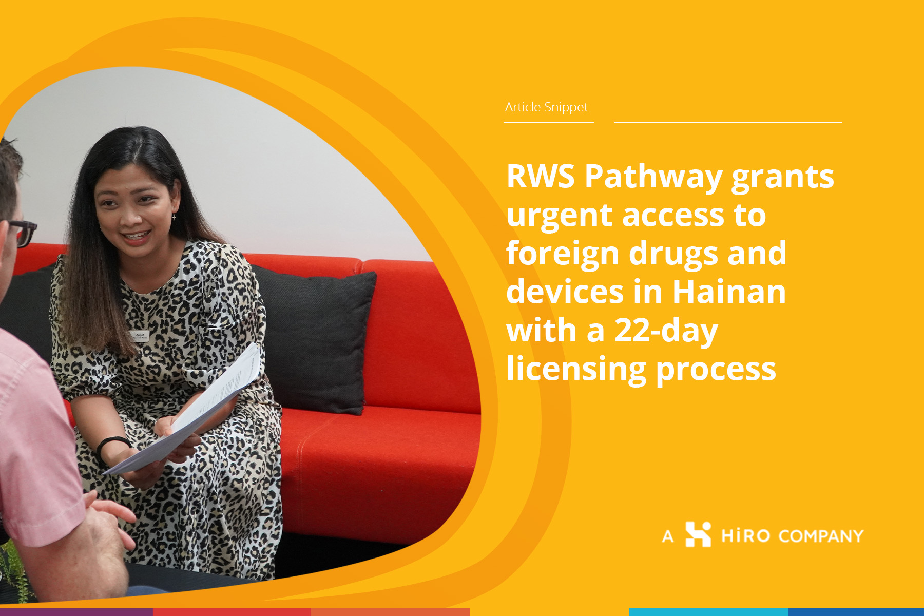 Hainan Boao Lecheng special zone is the first area in China where RWD can be widely used. The Lecheng Real World Study (RWS) pathway allows overseas drugs, medical devices, and IVDs with clinical urgency status, that have not been approved by the China NMPA, to be sold and used in real world clinical settings in the Hainan province, China.
